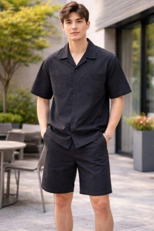 Gstar Black Premium Imported Cotton Lycra Fabric Emboss Design Cord Set 3824